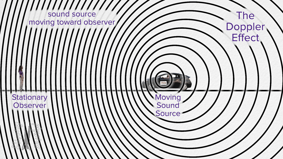 Любая волна имеет длину или расстояние между гребнями. При приближении к источнику ее распространения требуется меньше времени, чтобы добраться до наблюдателя. Д