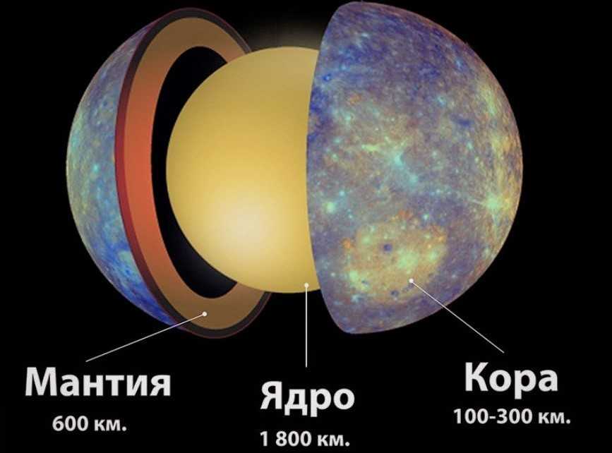 Плотность Меркурия является высокой, выше только у нашей Земли, в центре планеты находится огромное расплавленное ядро, составляющее 75% диаметра всей планеты.