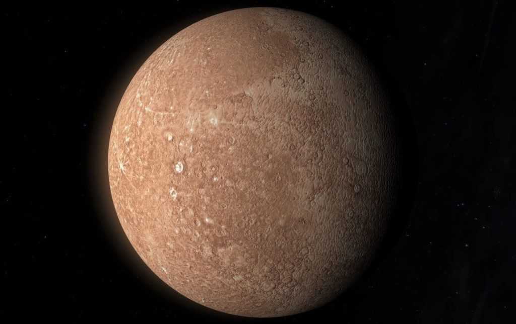 Своими размерами Меркурий лишь немного больше, чем наша Луна. Поверхность его также подобно лунной, изрешечена кратерами, следами мелких астероидов и метеоритов.