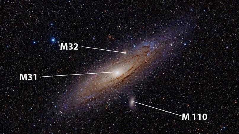 У галактики М 31 есть с десяток галактик – спутников. Самые яркие из которых – эллиптические М 110 и М 32. Первая отделена от М 31 и хорошо заметна, а вот М 32 скрыта за ней и как бы смешивается, поэтому найти её сложнее.