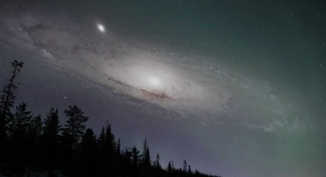 Если бы галактика Андромеды была гораздо ближе. Возможно, когда-нибудь такой вид и будет.