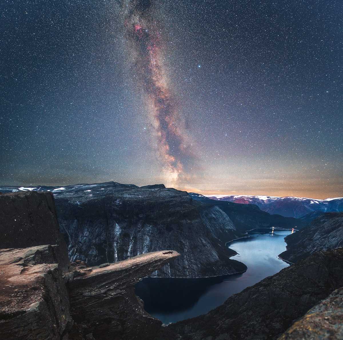 Млечный Путь в направлении Летнего треугольника и созвездий Щита и Стрельца выглядит очень эффектно: бросается в глаза его сложная клочковатая структура, в которой яркие звездные облака перемежаются с красноватыми водородными туманностями и темными прожилками космической пыли. Фото: Руслан Мерзляков/APOD