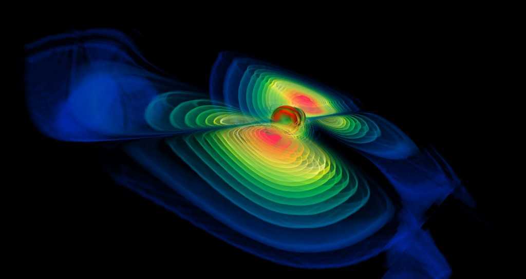 Компьютерная симуляция волн от столкновения двух черных дыр