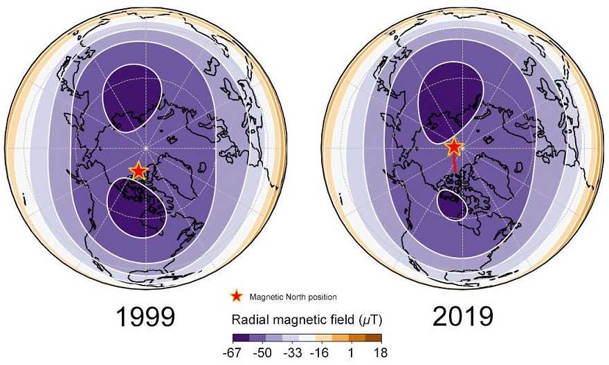 Северный магнитный полюс Земли впервые открыл Джеймс Кларк Росс еще в 1830-х годах. С тех пор ученые постоянно отслеживают его движение, и до недавнего времени скорость его перемещения была небольшой. В 2005 году северный магнитный полюс имел координаты 82° 07′ с.ш. 114° 04′ з.д.