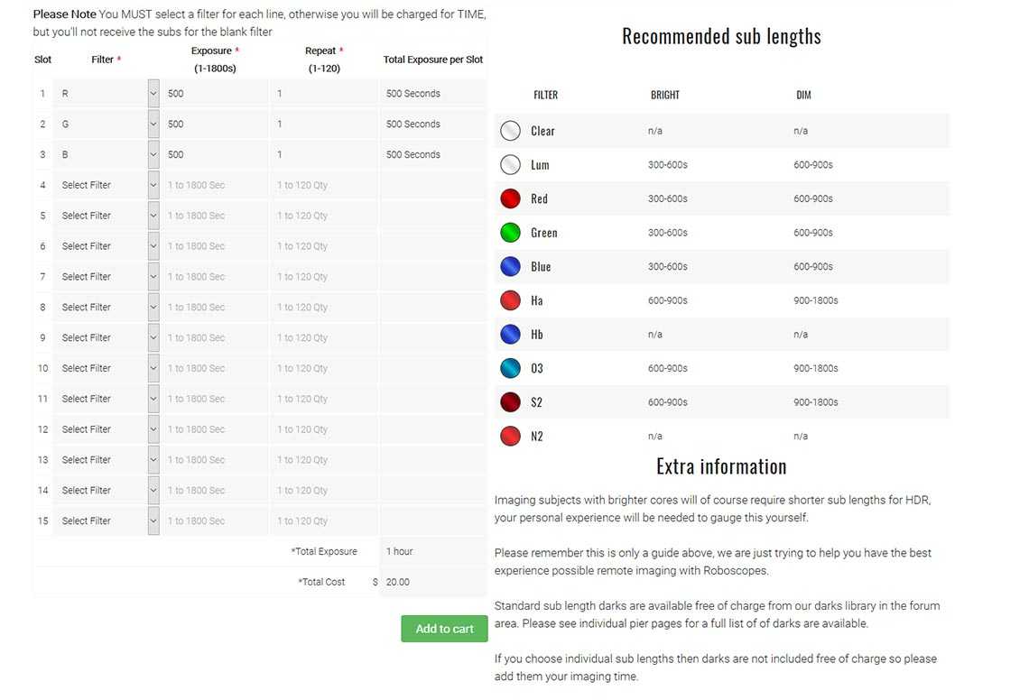 Стоимость базовой подписки — около $20 в месяц. Есть пробный период (1 месяц), которого более чем достаточно, чтобы ознакомиться с возможностями Telescope.live. На мой взгляд, если у вас достаточно средств, лучше оформить премиум ($50 в месяц), так как вы не будете ограничены в количестве наблюдений. В ином случае одновременно можно будет использовать не более 5 телескопов с удалённым доступом.