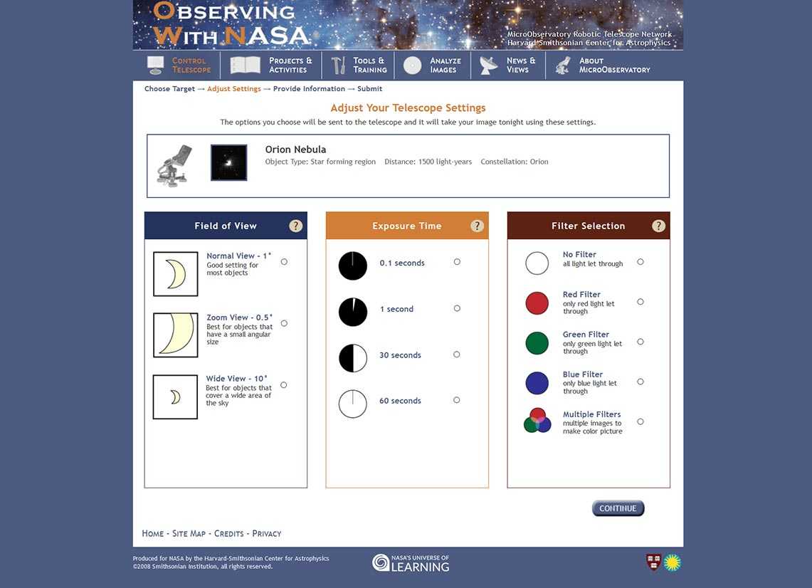 Второй сайт по степени удобства для наблюдения за космосом в реальном времени — MicroObservatory.