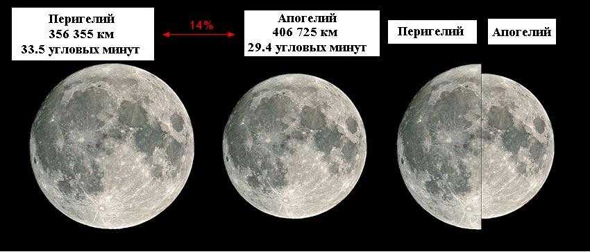Сравнение видимого диаметра Луны на земном небе в перицентре и апоцентре лунной орбиты