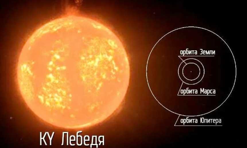 Если звезду KY Лебедя поместить в центр нашей системы, то она бы вышла за пределы орбиты Юпитера и поглотила его вместе со всеми спутниками.