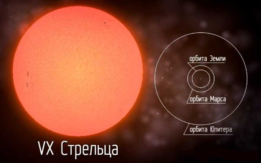 VX Стрельца — одна из самых больших изученных звёзд, уступающая по размерам главным образом звезде UY Щита. Её радиус составляет примерно 1120—1550 солнечных радиусов. Более старые оценки дают от 1350 до 1940 солнечных радиусов.