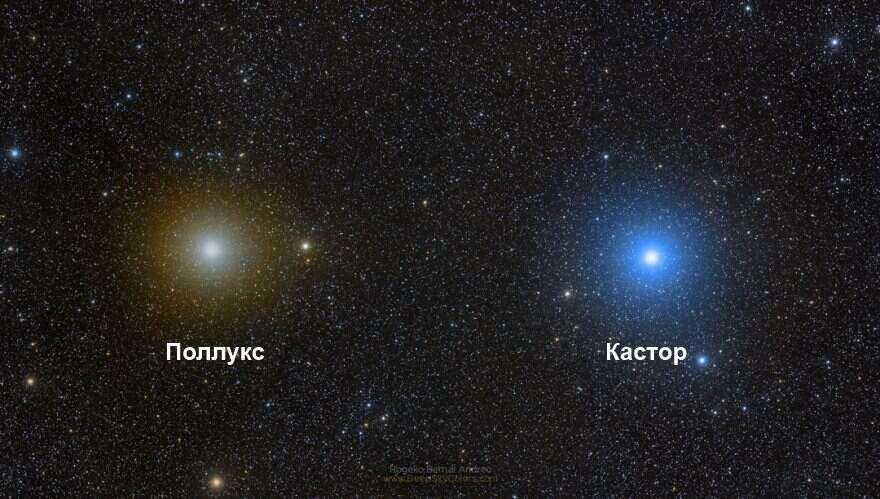 Как вы уже знаете, самые яркие звезды в созвездии — Кастор и Поллуско. Первая звезда — это альфа, двойная звезда, у которой на самом деле есть не один, а пять спутников, связанных гравитацией.