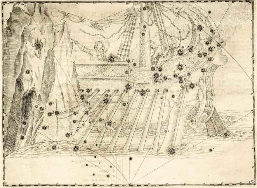Корабль Арго было одним из 48 созвездий, о которых знали греки и внесено в список во втором веке Птолемеем. Занимало огромнейшее место между Большим Псом и Южным Крестом. Позже добавили созвездие Компас.