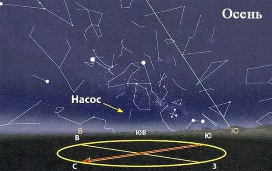 Осенью Насос можно увидеть над горизонтом только после 2 часов ночи.