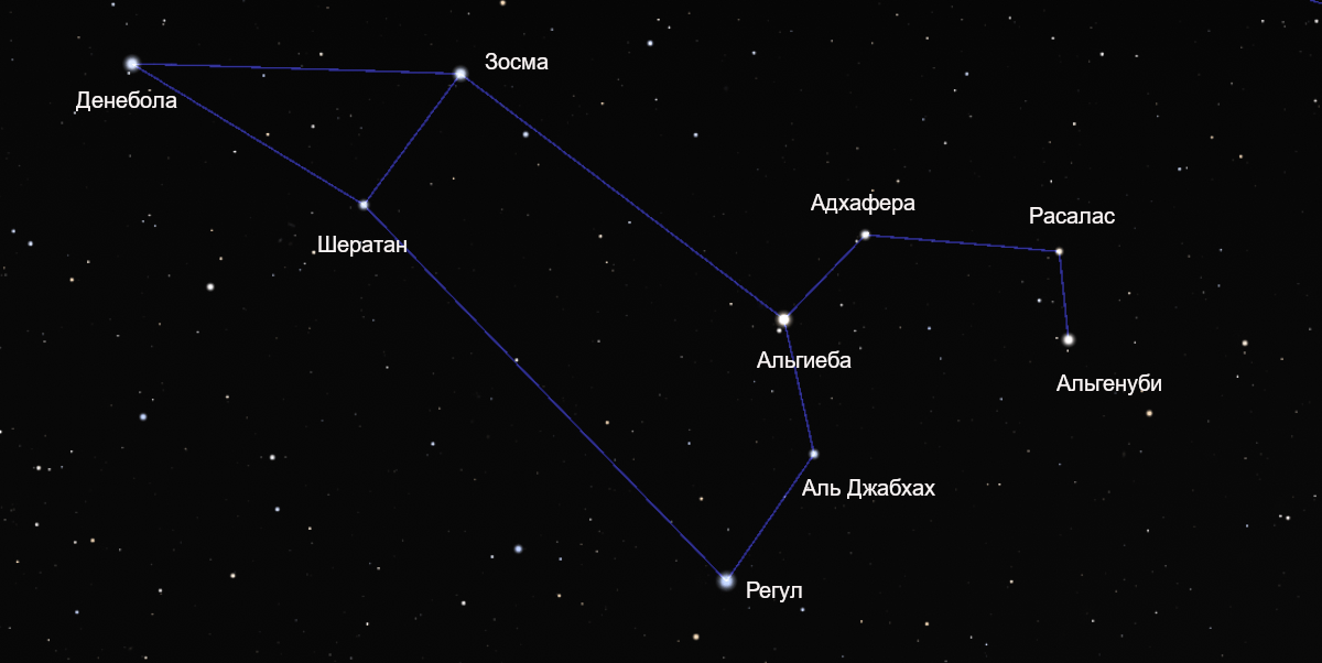 | Звёзды | Регул Альгиеба Денебола Зосма Альгенуби |