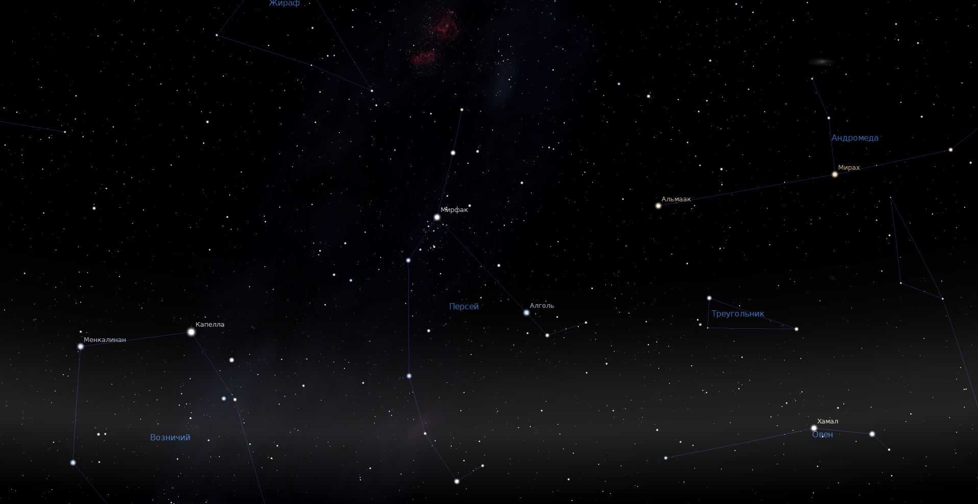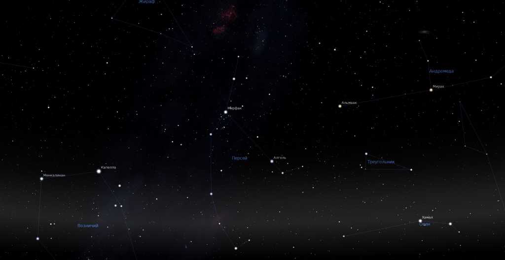 Лучшее время для наблюдения данного созвездия наступает поздней осенью – в ноябре. Однако, жители средних широт России могут наблюдать его практически весь год, за исключением разве что мая и июня месяцев, когда Персей частично прячется на севере за пределами горизонта. Но, дождавшись ноября или декабря и подняв свой взгляд на звездное небо, каждый сможет различить на небосклоне неправильный многоугольник, образованный 11-ю самыми яркими звездами данного созвездия. Это и есть созвездие Персей.