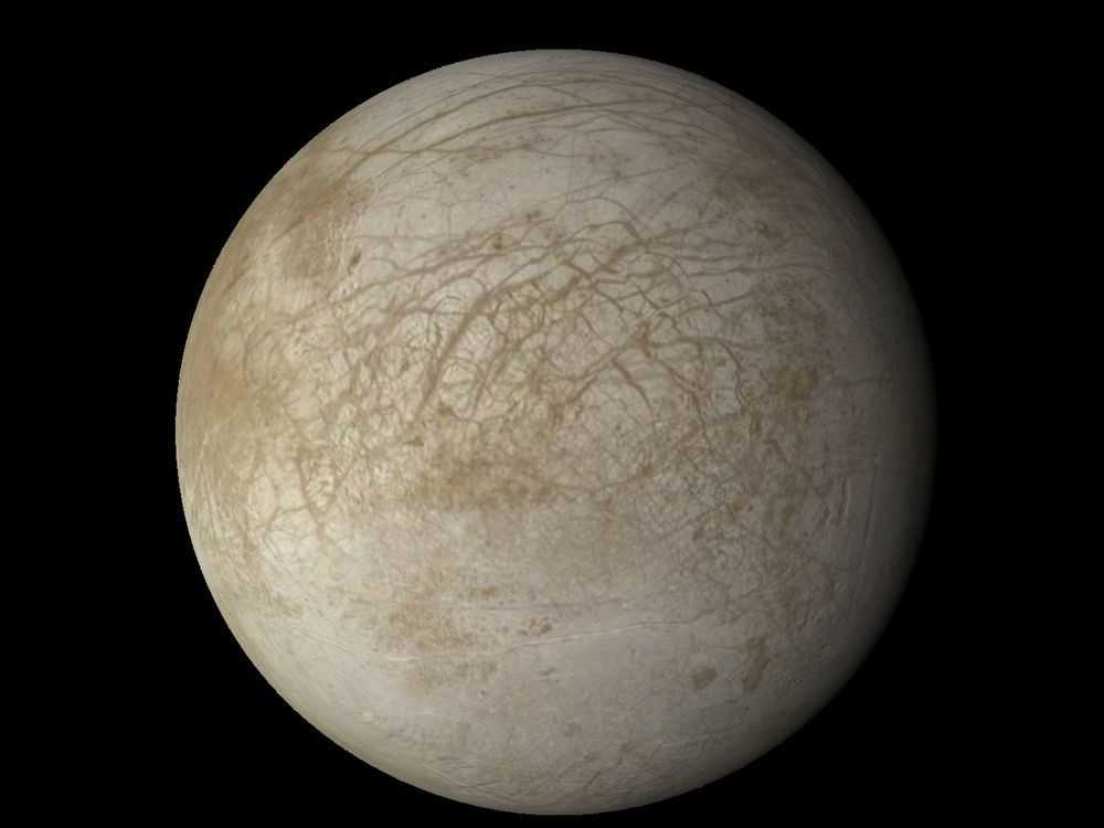 Европа – самый маленький из галилеевых спутников. Его поверхность удивительно ровная, без кратеров и больших расколов. Возможно, под его ледяной оболочкой толщиной в 15 километров скрывается целый океан. Если это так, то в этом океане будет больше воды, чем во всех вместе взятых океанах Земли. Более того, здесь могут быть условия, подходящие для развития внеземной жизни, что делает Европу интересным объектом для исследований в области астробиологии.