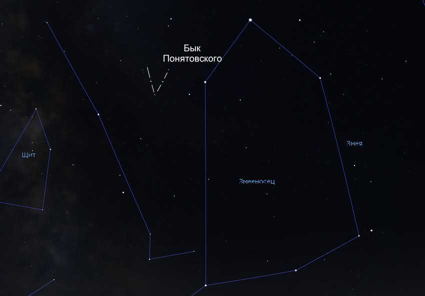 Бык Понятовского находится на северо-востоке созвездия Змееносца. Рисунок: Stellarium
