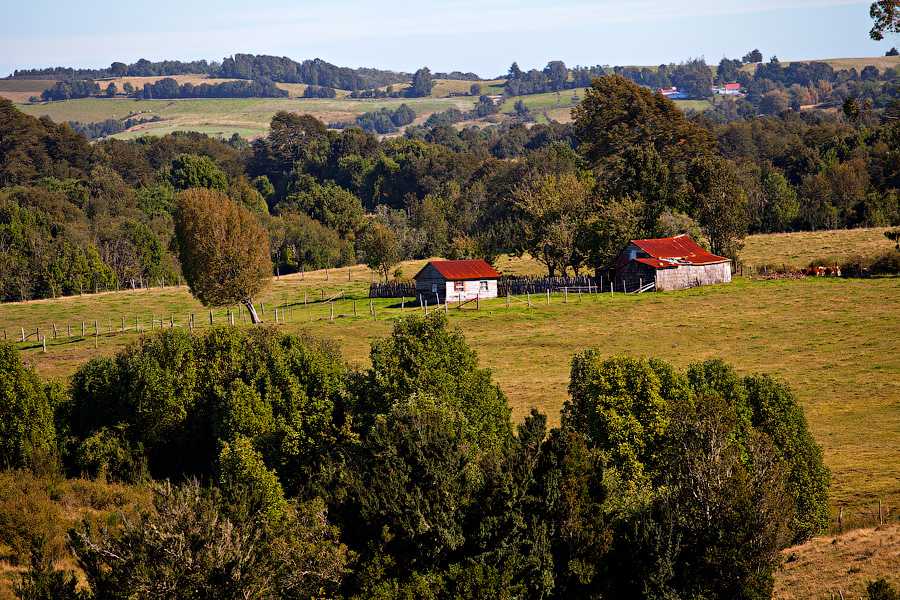 Остров Чилоэ отделен от материковой части Чили 2-километровым (1,2-мильным) каналом Чакао на севере. Большинство хороших гаваней расположены на северном и восточном берегах острова. Восточный берег отмечен серией полуостровов и заливов, особенно Эстеро-де-Кастро, где расположена столица Кастро. Западная часть острова Чилоэ, как и весь остров Гуафо, холмистая и покрыта лесами. Холмы разделены на два хребта с севера на юг, Пиучен и Пирулил , разделенные озерами Кукао и Уиллинко . Они содержат самые высокие точки архипелага и не превышают 800 метров (2600 футов). Впадины в западном лесу заняты многочисленными небольшими озерами и болотами, разбросанными по ландшафту.