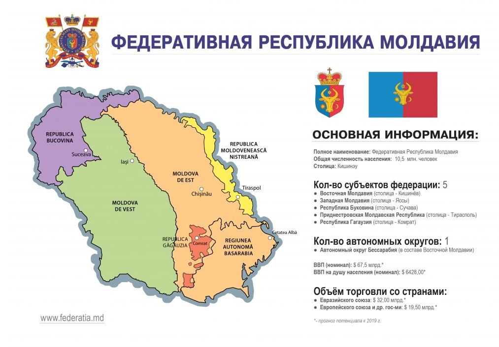 - Административное деление: 32 района, 13 муниципиев, 1 автономное территориальное образование (Гагаузия) и административно-территориальные единицы левобережья Днестра.