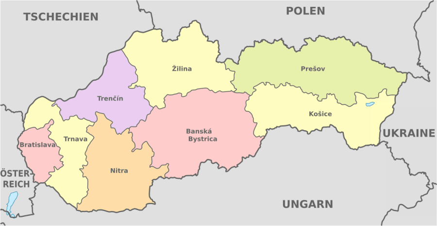- Западная Словакия (Братислава, Нитра, Трнава, Тренчин) — самый урбанизированный регион страны, который расположен в долине Дуная и его притоков. Представляет собой холмистую равнину с лесными массивами.
