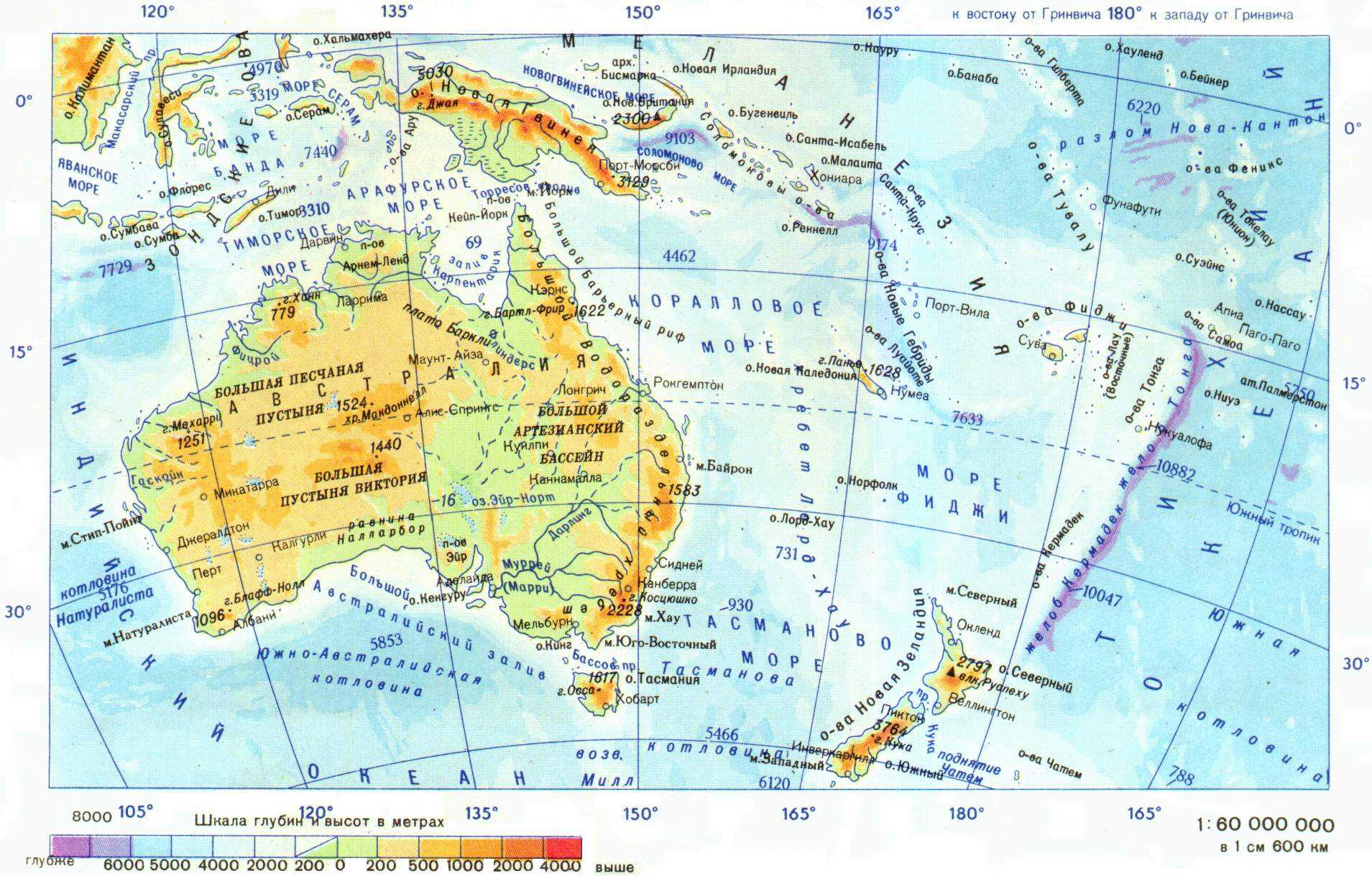 На подробной карте Австралии со спутника можно увидеть, что практически всю центральную территорию страны занимают пустыни. Наиболее известными пустынями являются Большая Песчаная пустыня, Большая пустыня Виктория и полупустыня Большой Артезианский бассейн.