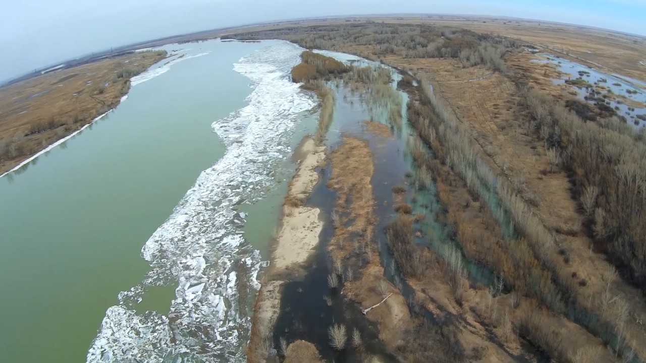 Река Иртыш, весна, апрель 2017 с воздуха (с высоты)