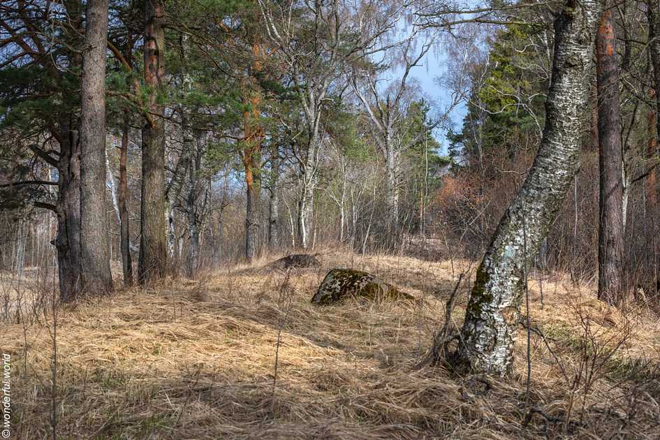 Два найти легко, к ним ведет тропинка как раз напротив кирхи. Надо подняться на бугор и спуститься к самой речке.