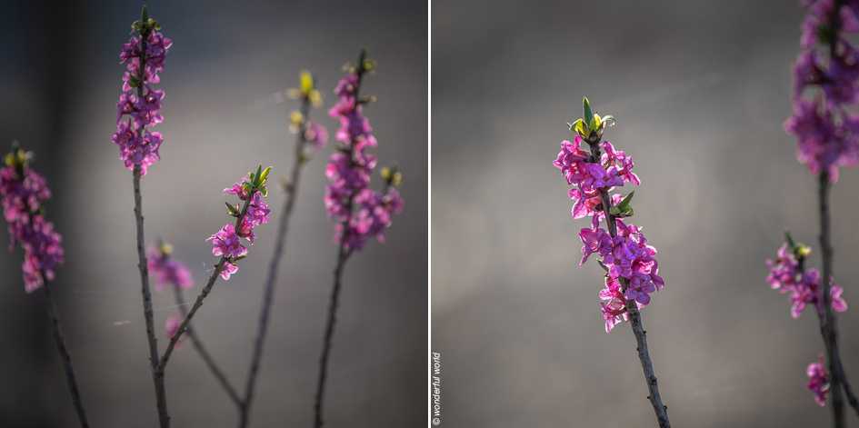 А еще я обнаружила симпатичные розовые цветочки на кустике. Я думала, это что-то типа багульника, цветет так красиво, а оказалось, — волчье лыко, ядовитое растение.