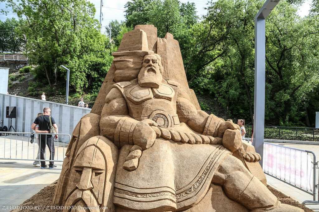 “Памятник” из песка богатырю Каме на набережной в Перми