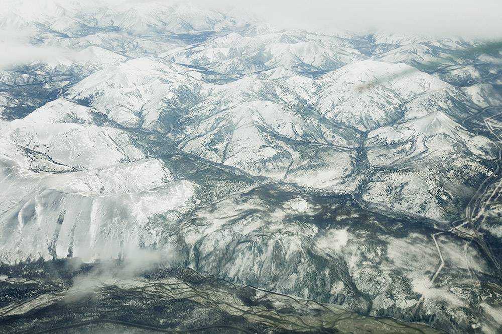 А эти заснеженные сопки я вижу с борта самолета, когда возвращаюсь в Москву в середине сентября