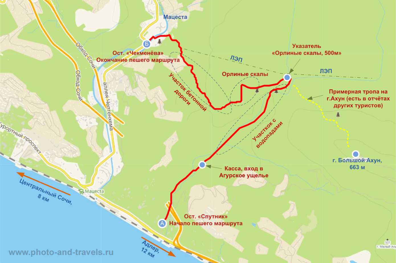 Карта пешеходного маршрута от остановки общественного транспорта в поселке Кудепста до пляжа «Робинзон»