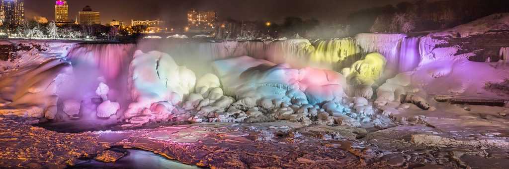 Теперь, более 150-ти лет спустя, это стало традицией. Каждый вечер воды Ниагары подсвечиваются разными оттенками: от цветов флагов стран до красок живописных природных явлений радуги и северного сияния.