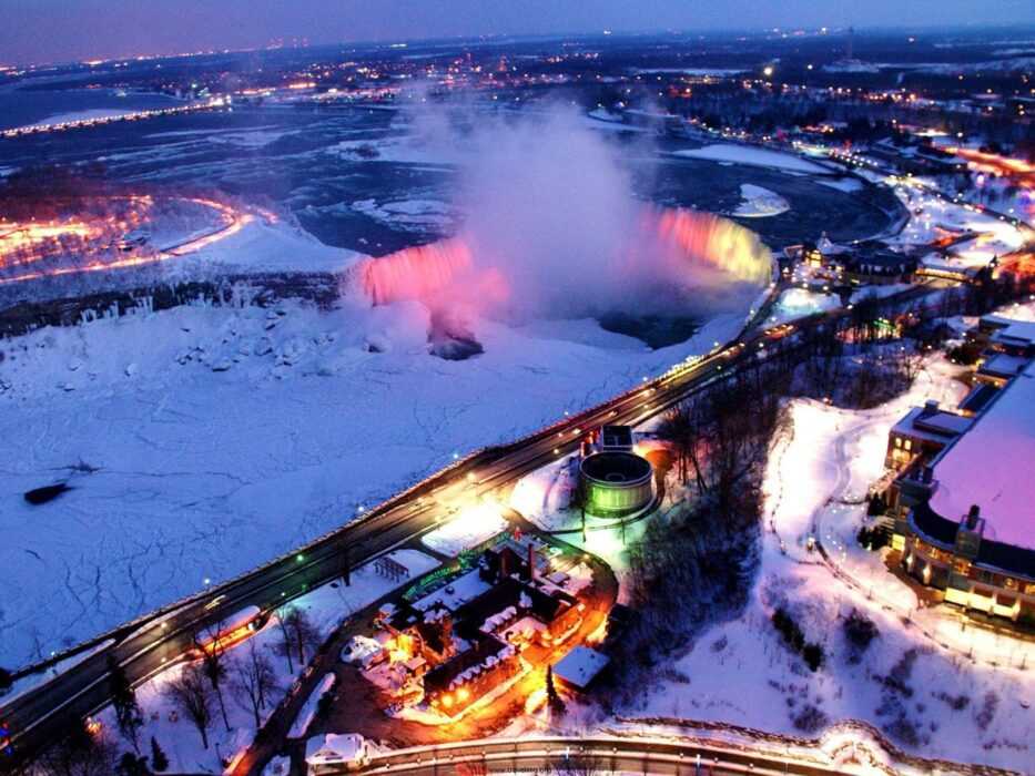 Зимой здесь проводится «Зимний фестиваль огней». Однако зимой обычно замерзают только края водопада, а центральная его часть продолжает с грохотом гнать воды из озера Эри в Онтарио.