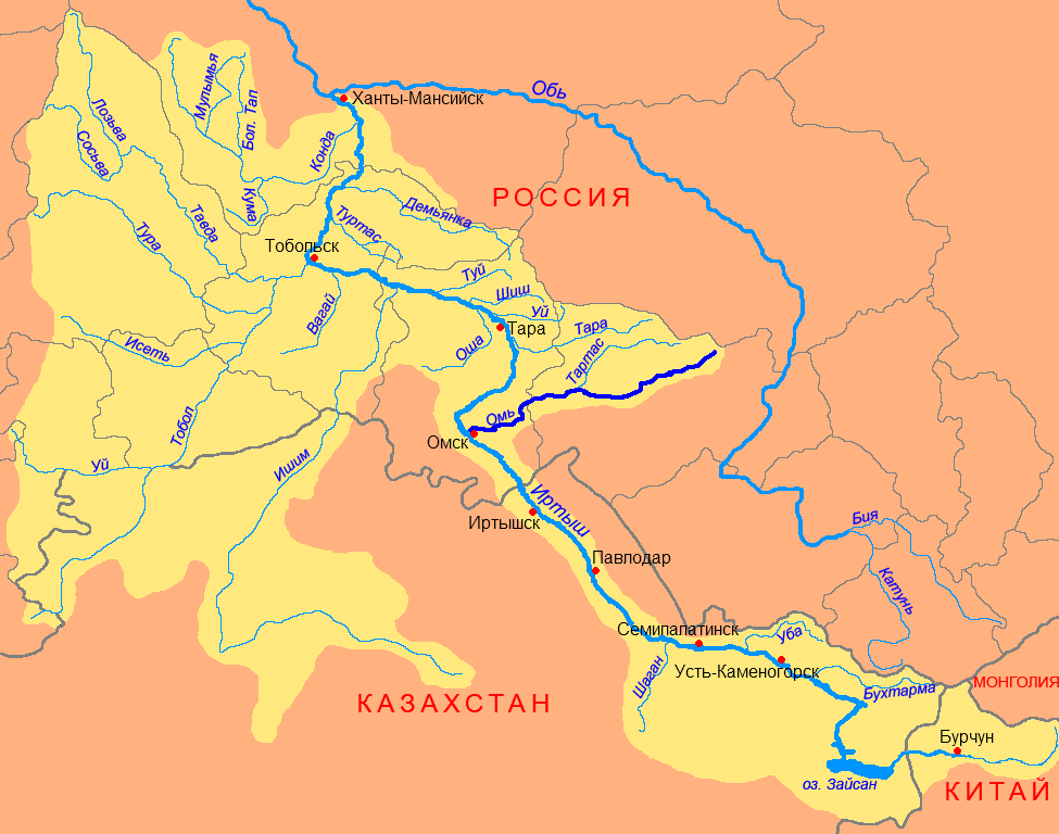 - Омск, где река заканчивает свое течение.
