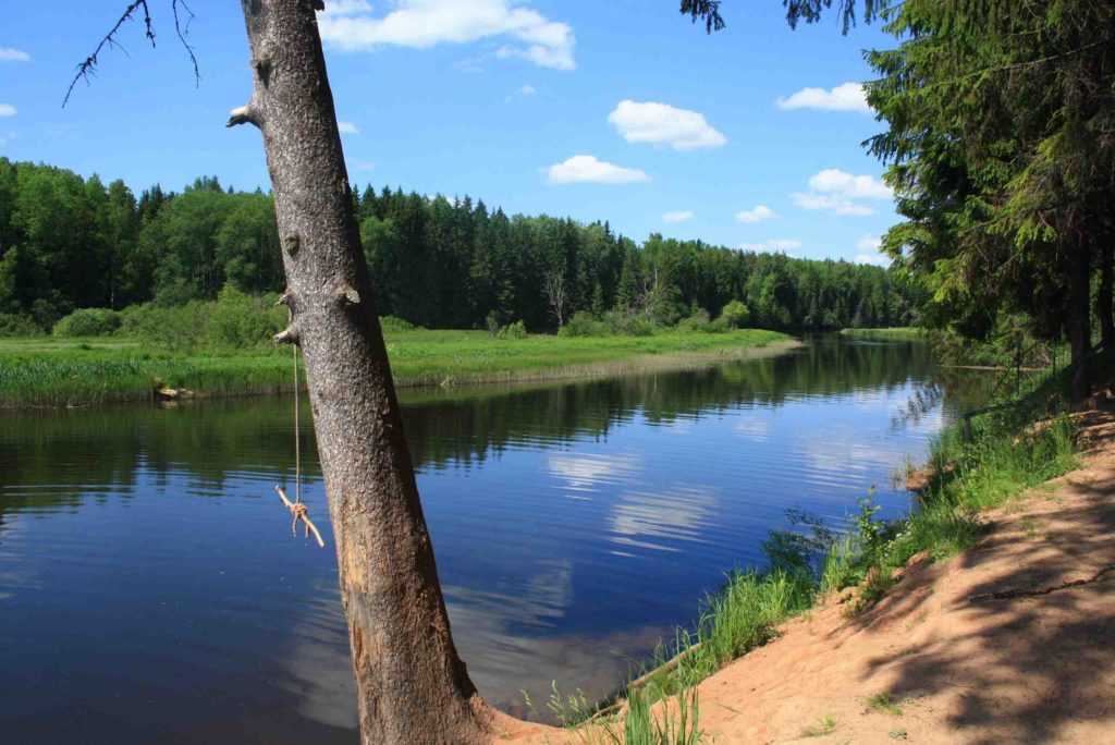 Выспались? В путь! И снова 30 км, на этот раз до устья реки Лемовжи. Интересное по пути: немного ниже населенного пункта Железо мы пройдем по новому, искусственному руслу Луги. Этот участок был вырыт для обхода крутого колена реки, так стало легче для судоходства. А все также продолжаем наслаждать свой взор видами прекрасных берегов. Каждый поворот реки открывает новые живописные картины. Иногда это песчаные обрывы, иногда зеленые холмы или луга. В лесах по берегам много ягод, грибов, здесь нетрудно найти хорошее место для стоянки и для купания. Между деревнями Муравейно и Вяз находятся природные памятники – обнажения девонских красноцветных песков и естественный водопад с осаждением известняковых туфов. В деревне Вяз на берегу растет красивейшая вязовая роща.