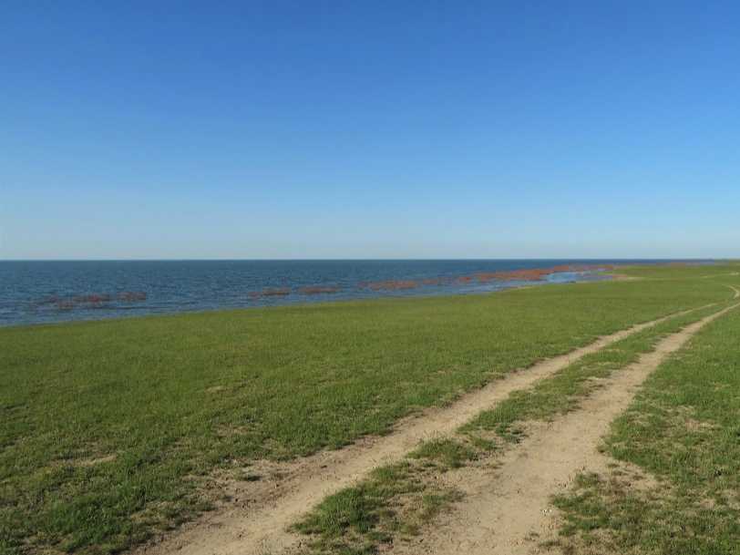 На высушенной ветрами и просоленной глинистой почве этой степи не растет почти ничего, даже растительный мир пустынь кажется разнообразнее. Этот унылый пейзаж не оживляет даже полноводная река Сырдарья — фото это хорошо демонстрирует.