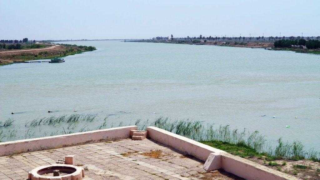 Другими городами, граничащими с Тигром, являются эзрайтийский и христианский века Ниневия, Ктесифон и Селевкия. Тигр и Евфрат естественным образом сходятся в Курне, затем Ирак впадает в Персидский залив вдоль границы с Ираном, хотя в Ираке есть несколько каналов, которые соединяют две реки.
