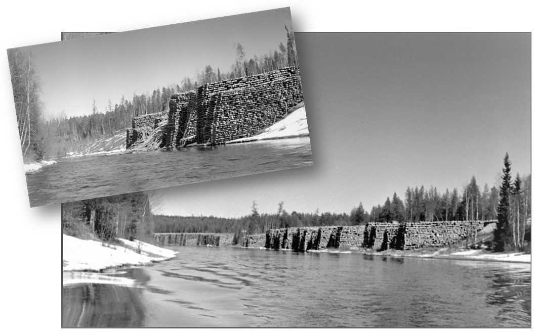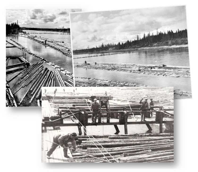 Весной, после того как сходил лед, лес сплавлялся. В Ухте, на правом берегу реки, как раз напротив железнодорожного техникума, была построена лесопилка. Реку в этом месте перегораживали бонами, устраивая запань, скопившийся лес вручную, баграми подтаскивали к берегу на бревнотаску и дальше на сушку и распиловку.
