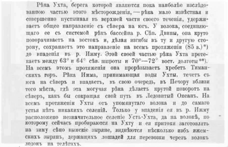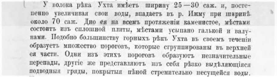 Но не будем глубоко углубляться в историю освоения нефтяных богатств Ухты, тем боле, что речь идет о реке. Немногочисленные экспедиции путешественников и предпринимателей, приезжавших на Ухту, больше всего интересовали ее недра, а о реке писали немногие. Лучше всего это сделал Александр Анатольевич Толубеев в своей книге «Река Ухта, нефтяные месторождения в ее районе, пути сообщения и население». Вот как он описывает реку Ухту после посещения в 1910 году: