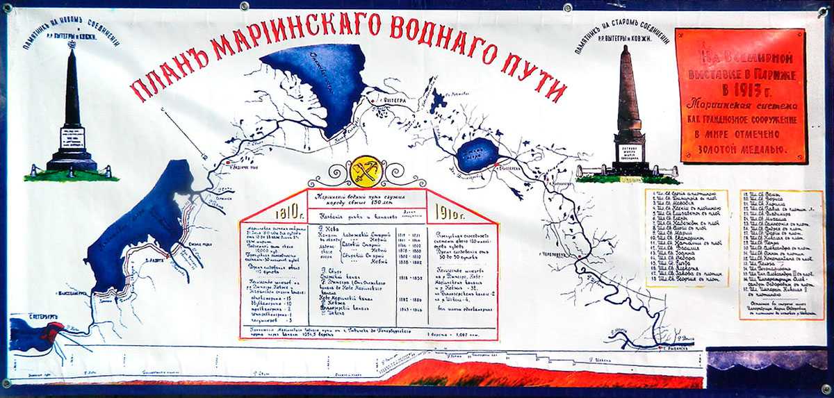 В своё время Мариинская водная система являлась самой грандиозной в мире системой гидротехнических сооружений. Её признавали шедевром деревянного гидростроения. Проект переустройства Мариинской водной системы получил Большую золотую медаль «За выдающееся достижение русской инженерной мысли» на Всемирной промышленной выставке в Париже в 1913 году. В Вытегре находится памятник федерального значения — шлюз №1 Святого Сергия.