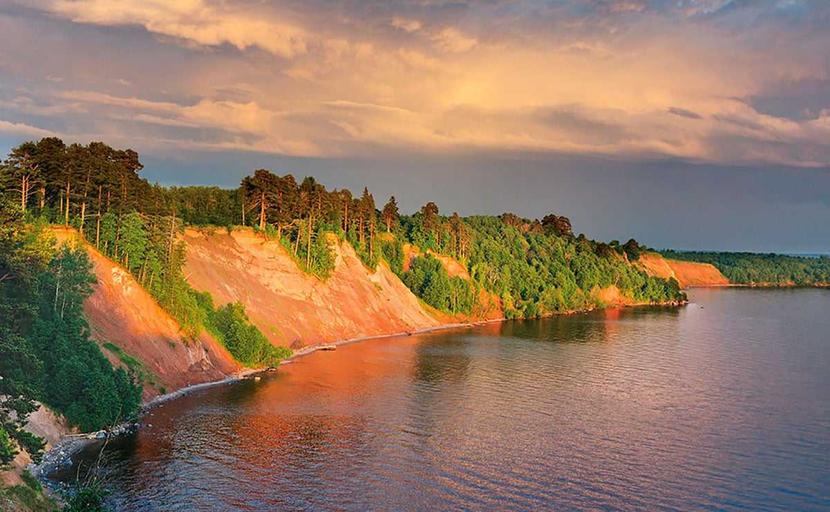 Среди необычных природных памятников стоит также отметить Андомский геологический разрез. Он представляет собой прибрежный обрыв длиной три километра. Древнейшие отложения образовали череду полос разных цветов и оттенков. По ним можно «прочитать» геологическую историю за последние 400 миллионов лет. Фактически это абстрактные картины, написанные самой природой.