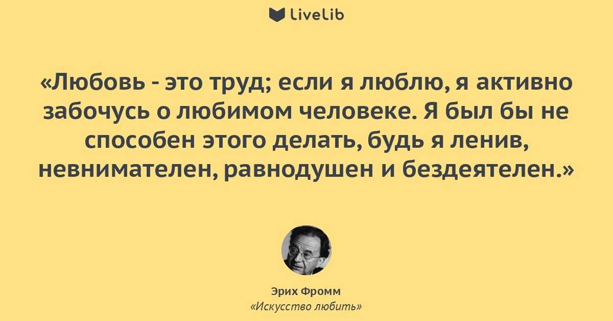 Согласно Фромму, любовь – это не сентиментальное чувство, доступное каждому. Любовь – это результат сознательной работы над собой, показатель личностной зрелости. Человек, который умеет любить, может сойтись с любым человеком. Ведь он постоянно познает себя и других, умеет преодолевать внутренние барьеры. Желание и способность любить важнее и сильнее, чем наличие объекта любви.