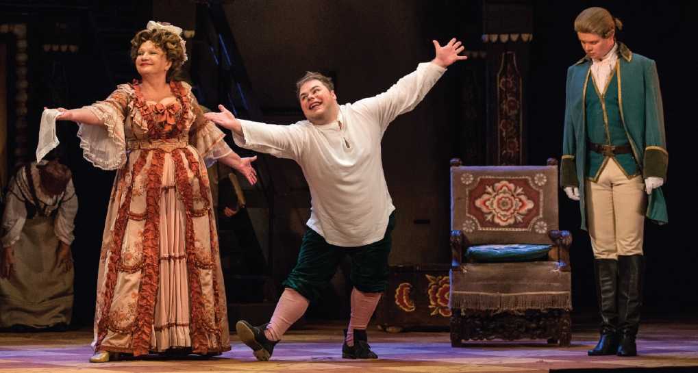 Появляются супруги Простаковы. Помещица заискивает перед Милоном.