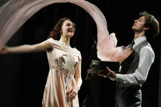 Афиша «Мастерской Фоменко» прирастает спектаклями, в которых нет самих «фоменок». Который год подряд в «Мастерскую» набирают стажеров, и те вводятся в репертуар и делают самостоятельные работы, у которых есть шанс стать спектаклями, — инсценировка тургеневских «Вешних вод» как раз из таких. Ее сделало последнее поколение стажеров, часть из них пришла в «Мастерскую» по окончании гитисовского курса Олега Кудряшова, часть — с курса Дмитрия Крымова и Евгения Каменьковича, который и собрал этот спектакль. Выполнен он в привычной уже, родившейся еще в гитисовской мастерской Фоменко, повсеместно распространившейся, но еще не приевшейся этюдной манере. Актеры читают прозу, естественно переходя с прямой речи на повествование, и превращают каждый эпизод в законченную, с большой фантазией сочиненную сценку. Давно замечено, что студийцы, оказавшись в «Мастерской», довольно быстро превращаются в «фоменок», то есть словно бы перерождаются в людей иной, несуществующей больше породы. И это очень на пользу тургеневской истории. Молодой человек в последний день своего путешествия встречает большую любовь, ей он готов принести в жертву свое будущее и свое имение — его нужно срочно продать, чтобы поправить дела будущей жены. Как нельзя более вовремя ему встречается однокашник с супругой, богатой бездельницей, — она готова имение купить, но просит подождать пару дней. Этого времени ей хватит, чтобы вскружить герою голову, — и жизнь его, вместо того чтобы наладиться, пойдет под откос. В название спектакля пошел заголовок статьи Чернышевского, но пусть вас не испугает это грозное имя. Потому что спектакль только во вторую очередь о том, что лучшие из русских (раньше их звали «лишние люди», теперь называют Global Russians) ведут себя малодушно, трусливо и на рандеву с жизнью неизменно терпят фиаско. В первую очередь это захватывающая, полная перипетий история про свойства страсти и тех прекрасных, ушедших в небытие русских, с которыми публике так приятно себя ассоциировать. «Тут нет ни крючкотворства с насилием и взяточничеством, ни грязных плутов, ни официальных злодеев, объясняющих изящным языком, что они — благодетели общества, ни мещан, мужиков и маленьких чиновников, мучимых всеми этими ужасными и гадкими людьми, — пишет Чернышевский. — Действие — за границей, вдали от всей дурной обстановки нашего домашнего быта. Все лица повести — люди из лучших между нами, очень образованные, чрезвычайно гуманные: проникнутые благороднейшим образом мыслей. Повесть имеет направление чисто поэтическое, идеальное, не касающееся ни одной из так называемых черных сторон жизни. Вот, думал я, отдохнет и освежится душа…»