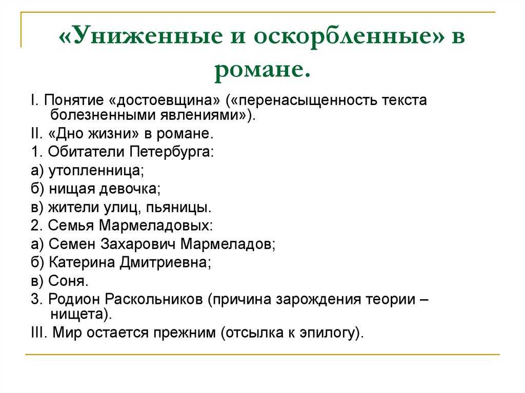 По произведению: «Униженные и оскорбленные»