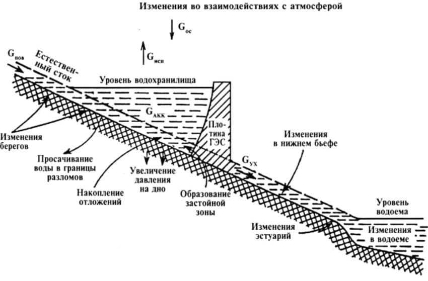 - испарений с поверхности зеркала водохранилища и вызывания засухи на прилегающих к нему регионах;