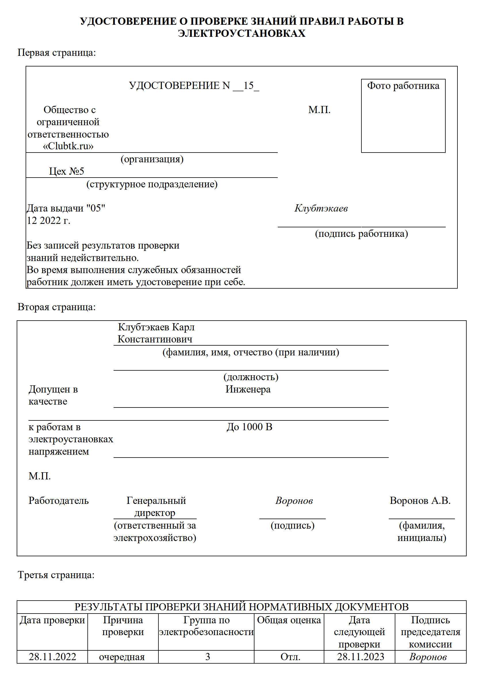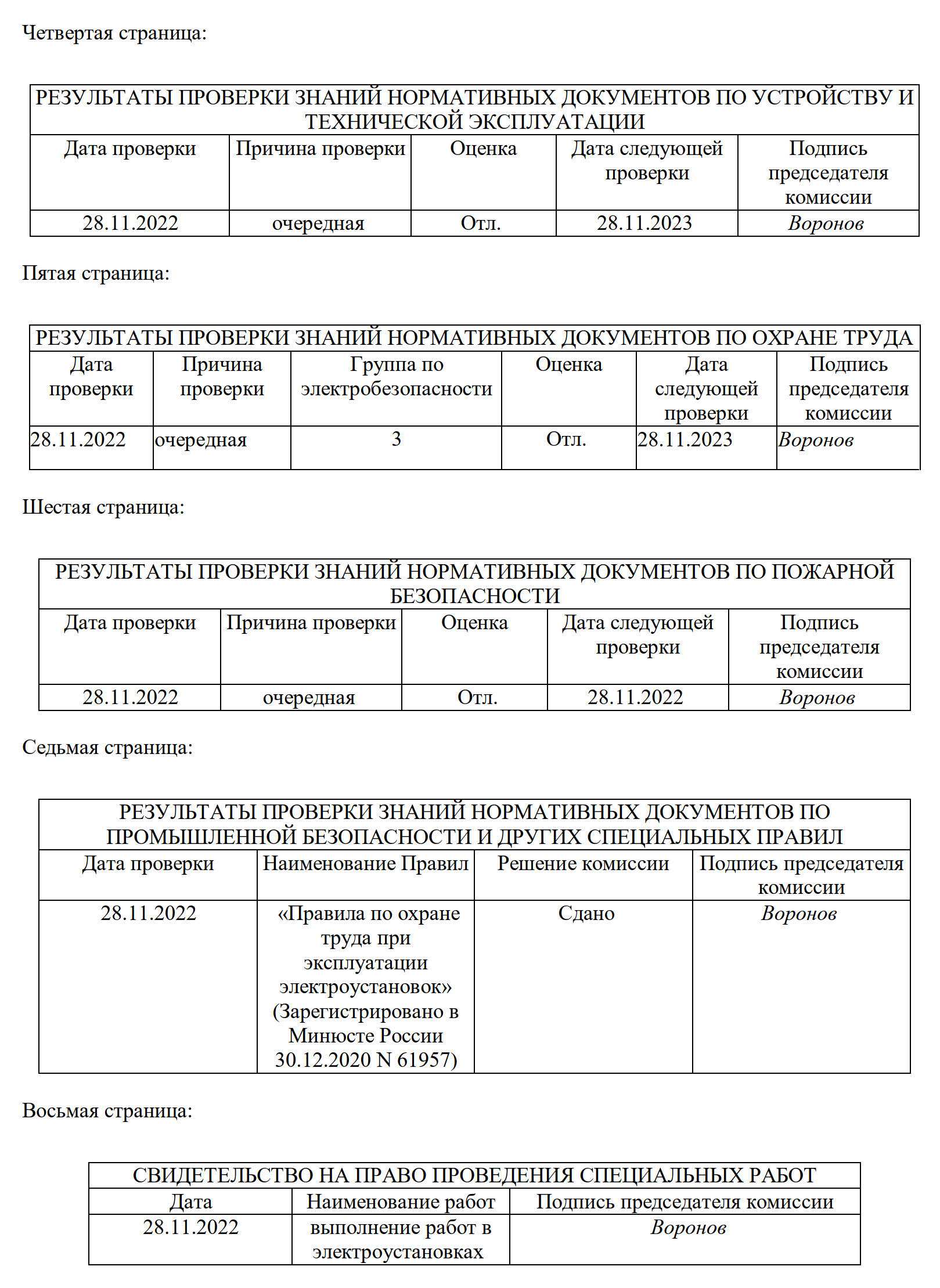 - Работник, имеющий допуск к проведению специальных работ, должен иметь об этом запись в удостоверении о проверке знаний.