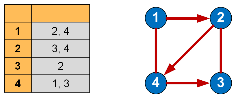 В каждой строке в первом столбце указана вершина выхода, а во втором столбце – список вершин, в которые входят ребра из текущей вершины.