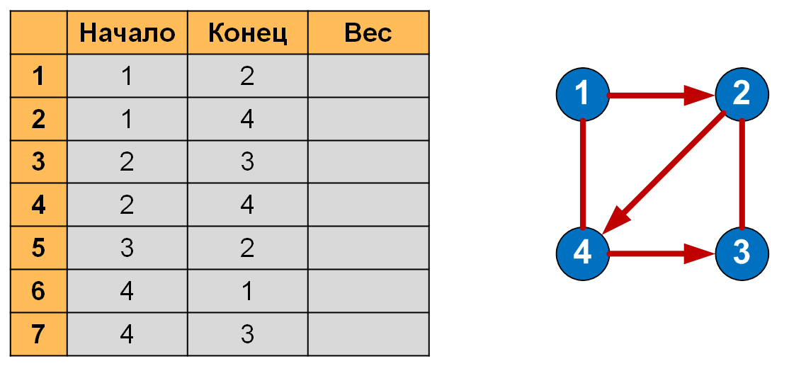 По отношению к памяти списки смежности менее требовательны, чем матрицы смежности. Такой список можно представить в виде таблицы, столбцов в которой – 2, а строк — не больше, чем вершин в графе.